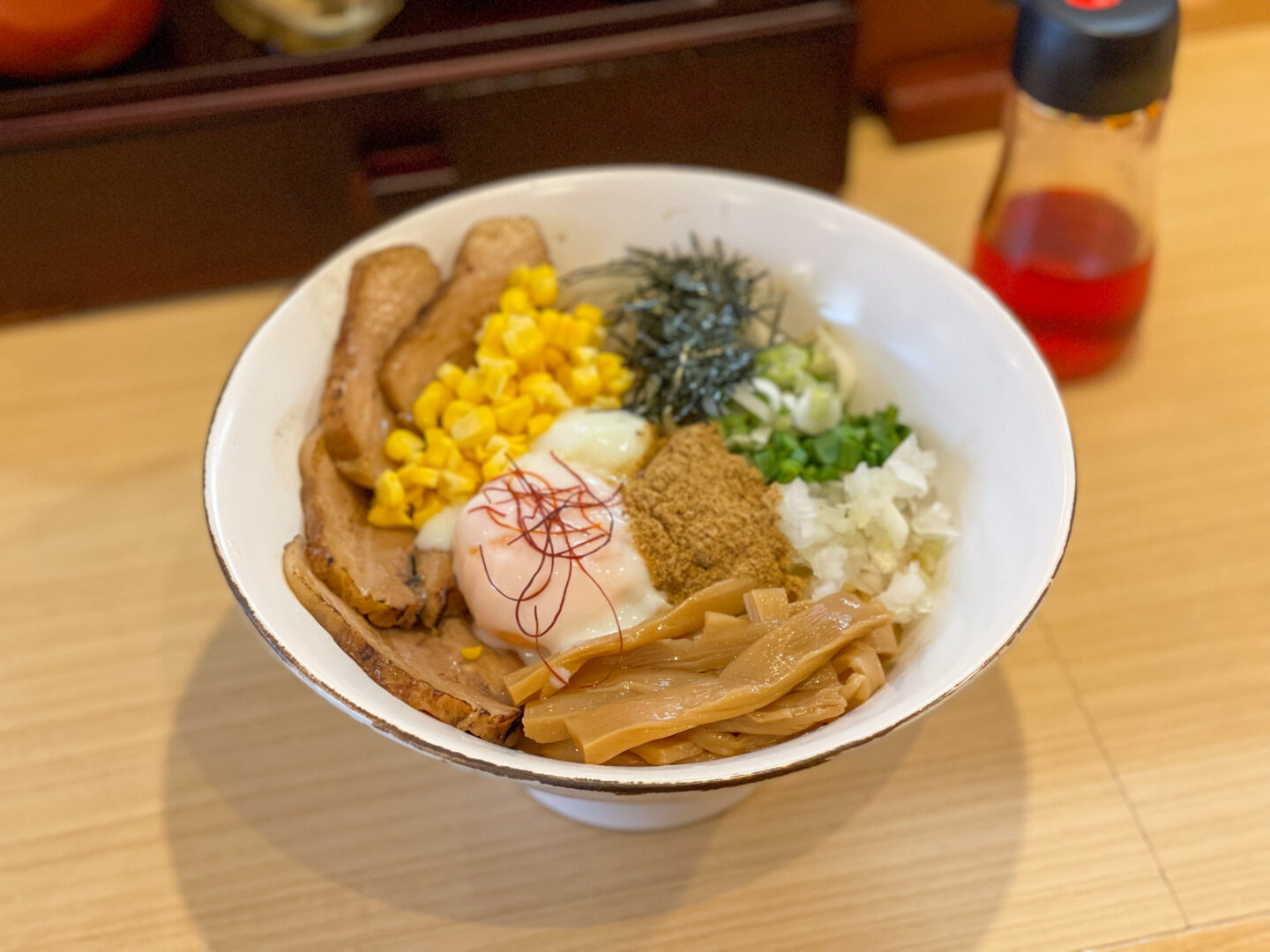 油そば用に作られた自家製麺は、もちもち食感で具材とよく絡みます。途中でラー油や酢をつけても美味しくいただけました♪